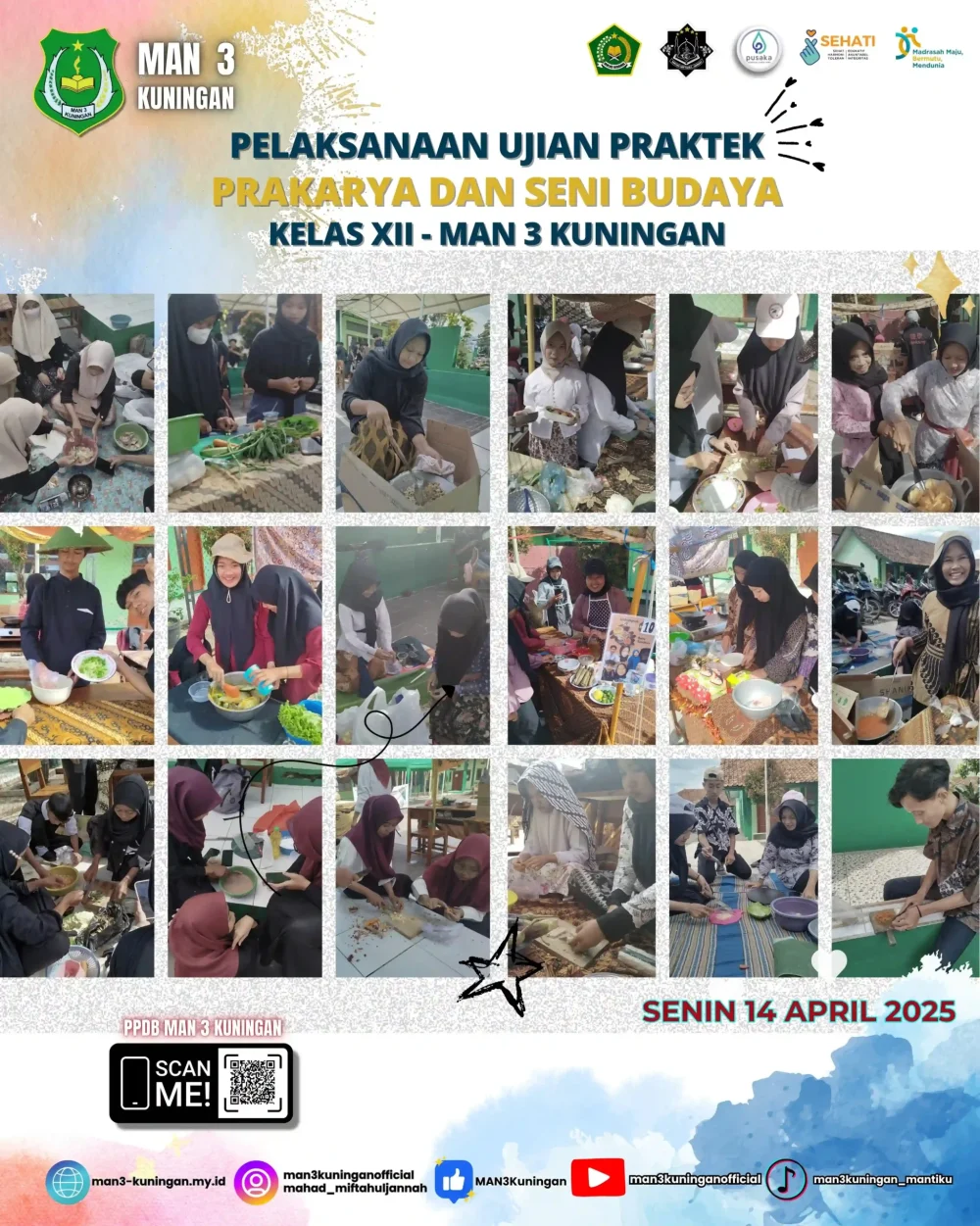 Hari Senin, 14 April 2025, siswa kelas XII menunjukkan bakat dan kreativitas mereka dalam ujian praktek prakarya dan kewirausahaan dengan tema “Tunjukan Bakat, Tumpahkan Ide, Ekspresikan Diri Lewat Karya“. Kegiatan ini merupakan salah satu bentuk penilaian yang bertujuan untuk mengukur kemampuan siswa dalam menerapkan konsep prakarya dan kewirausahaan.